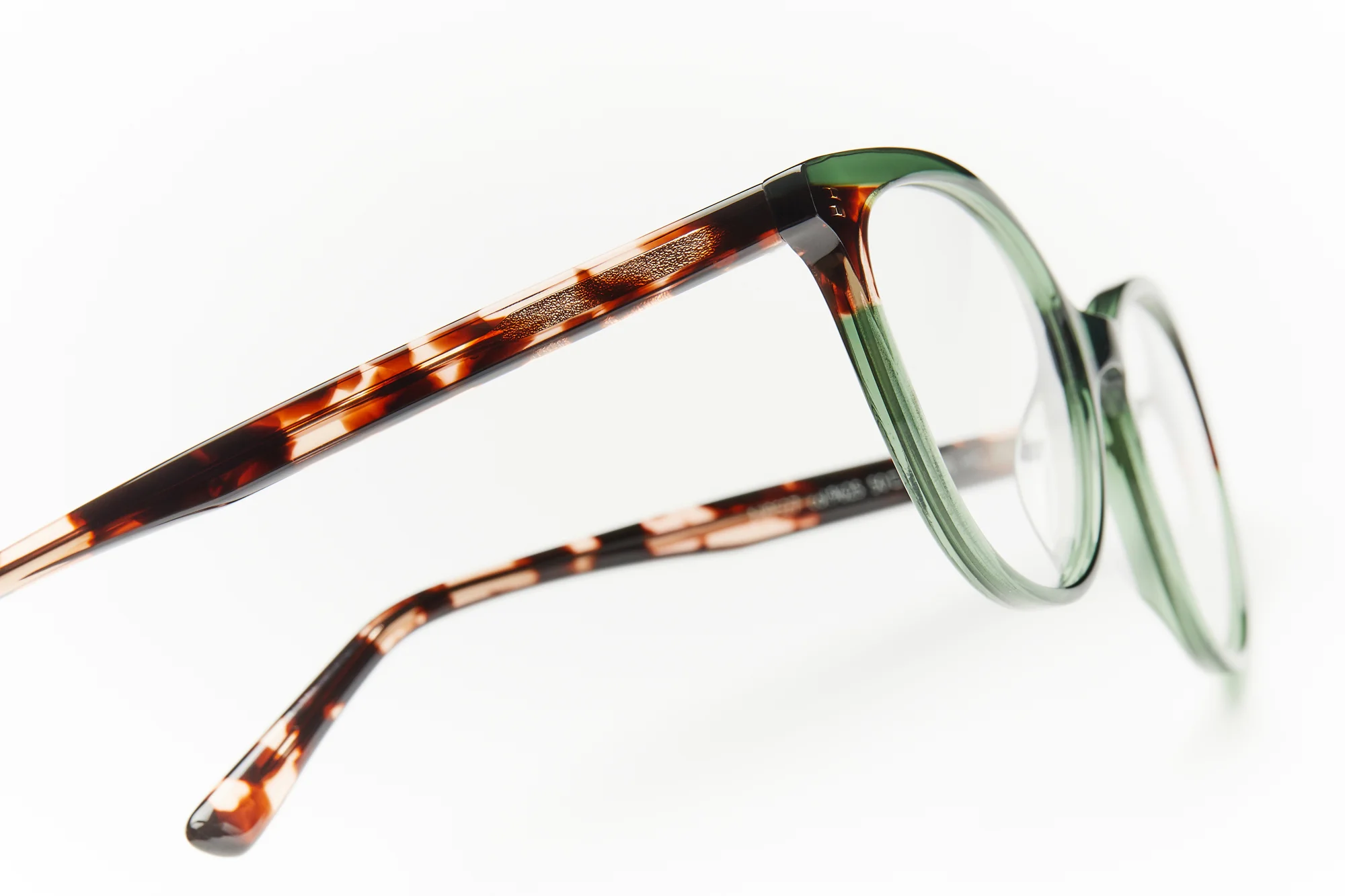 The new 9526-27 concept shows the NIFTIES acetate design DNA at its best. The concept introduce two distinct shapes in four dynamic colours each designed to enhance individual expression. Where one model is slightly rounded to cater to a unisex audience, the other has a graceful feminine curvature. Both models are united by the dual tone acetate combinations, where two distinct acetates are expertly laminated together — creating a gradient effect that makes them stand out.