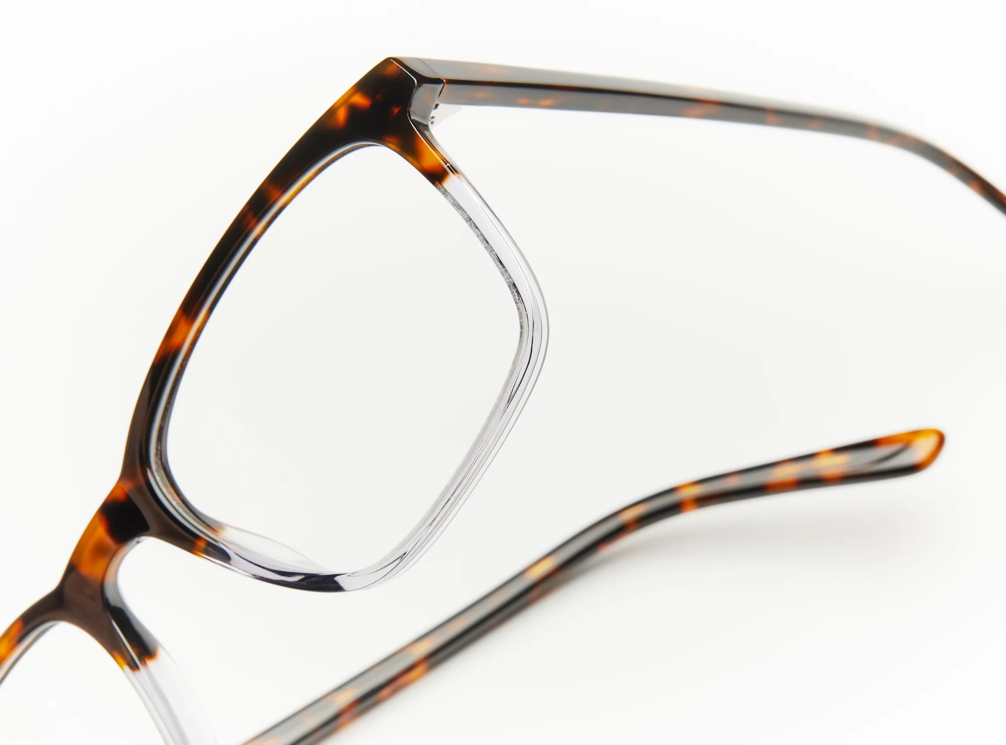 Classic and timeless frames in unexpected colour combinations — that is what characterises the 9529-30 concept. The first model is a classic panto shape with a distinct keyhole bridge at the front. The other model is a classic, rectangular male frame that is mainly characterised by its ability to highlight the laminated acetate combinations. Enjoy colourways such as matte black with havana pattern, deep red and transparent or a tortoise and turquoise.