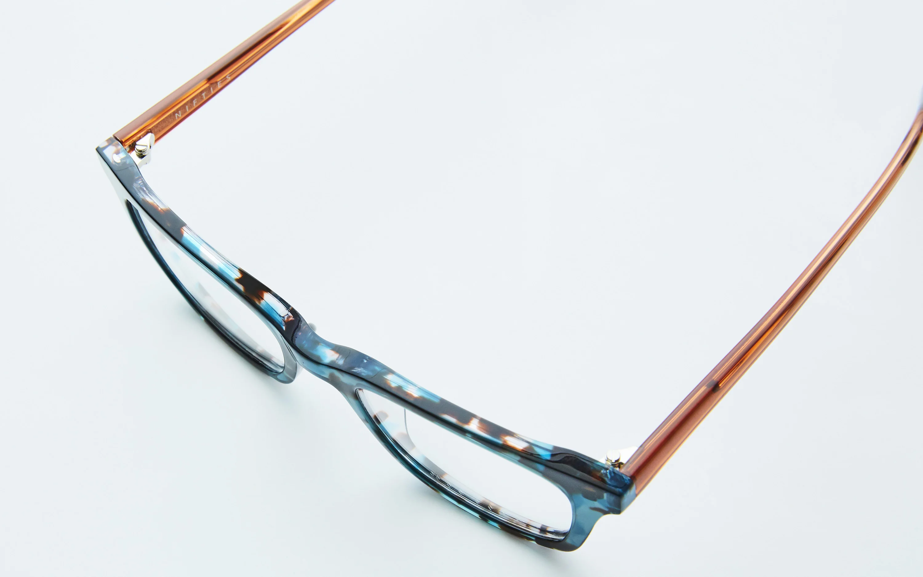 Chunky tort acetates in translucent multi colour torts play against colour pop vibrant temples and tip ends. A bolder style that still works for finer features and offers the same comfort and luxury feel that you would expect from Nifties.