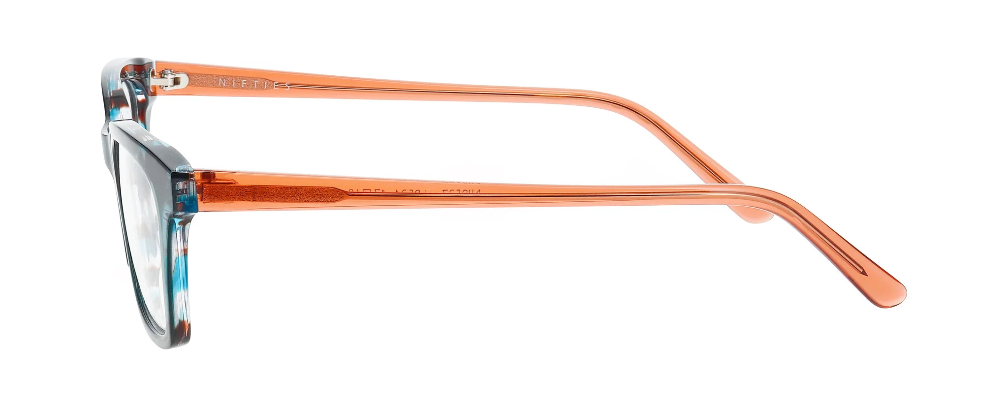 Chunky tort acetates in translucent multi colour torts play against colour pop vibrant temples and tip ends. A bolder style that still works for finer features and offers the same comfort and luxury feel that you would expect from Nifties.
