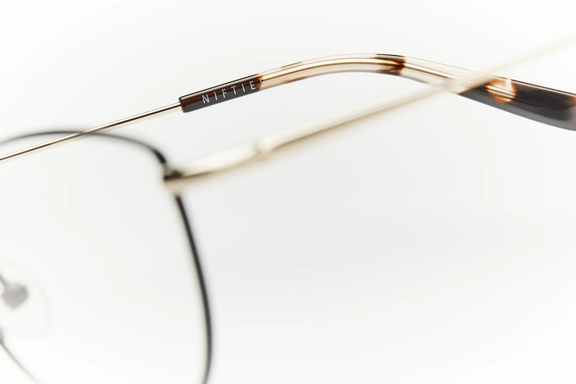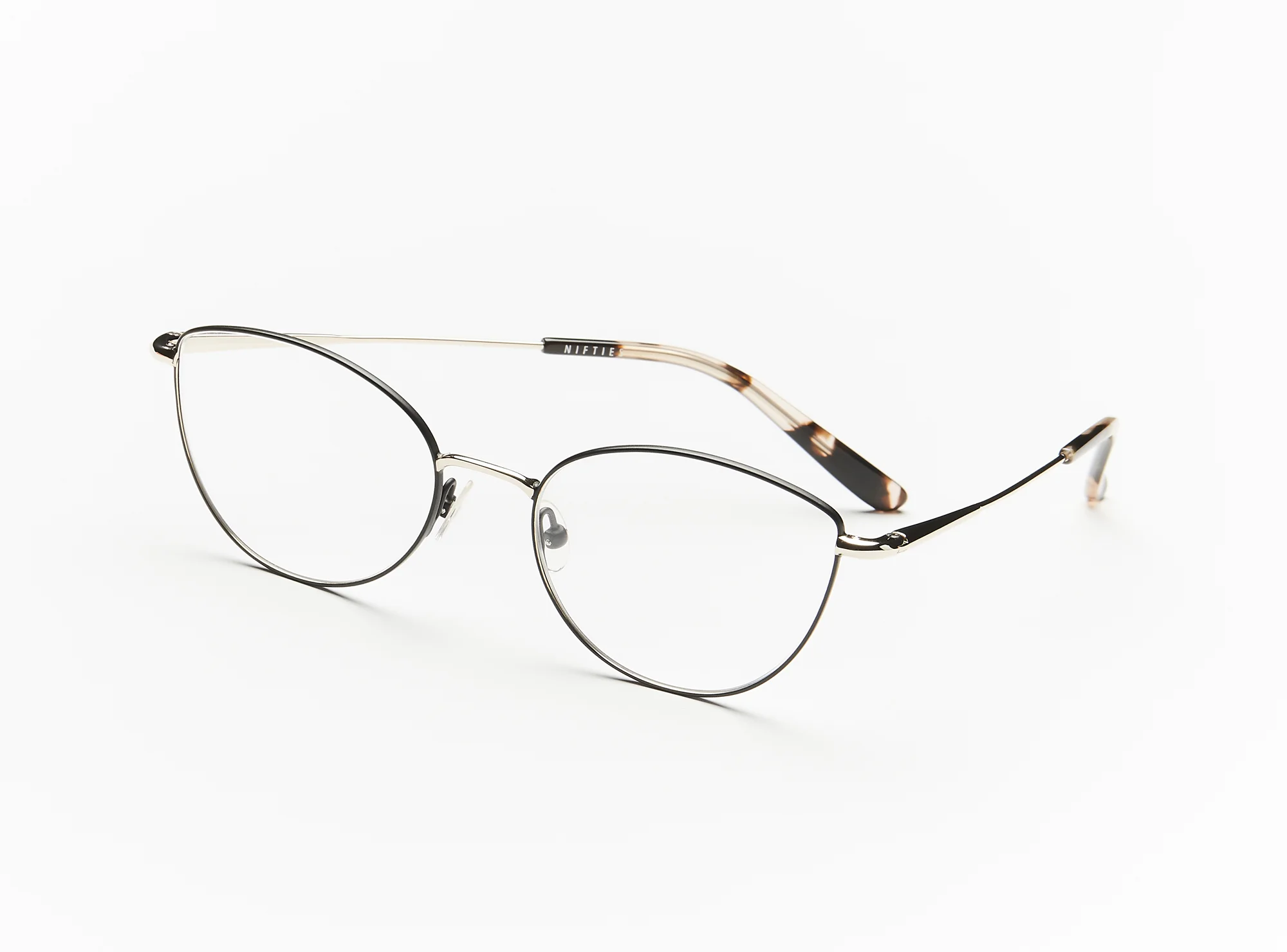 Graceful, vibrant and feminine are the keywords behind the NIFTIES 8546-47 concept. Model 8546 features a slender metal frame with a hint of cat-eye inspiration, adding a feminine touch to classic hues like blue and purple. The end tips play with patterns of colour, showcasing transparent accents that compliment the frame's front and nosepads.