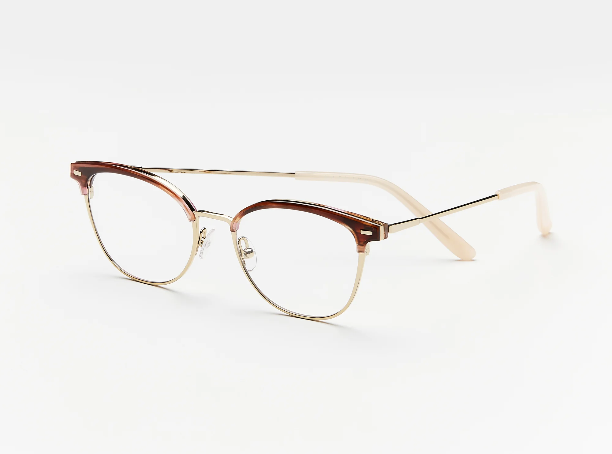 Embrace a retro aesthetic fused with the sleekness of modern design with our 8548-49 concept. Every frame features a distinct acetate top rim that pays homage to the iconic styles of the '60s and '70s, while the slender metal frame adds a contemporary touch. Both models comes in a range of colour tones. The 8548 stands out in a transparent pink and rose gold.