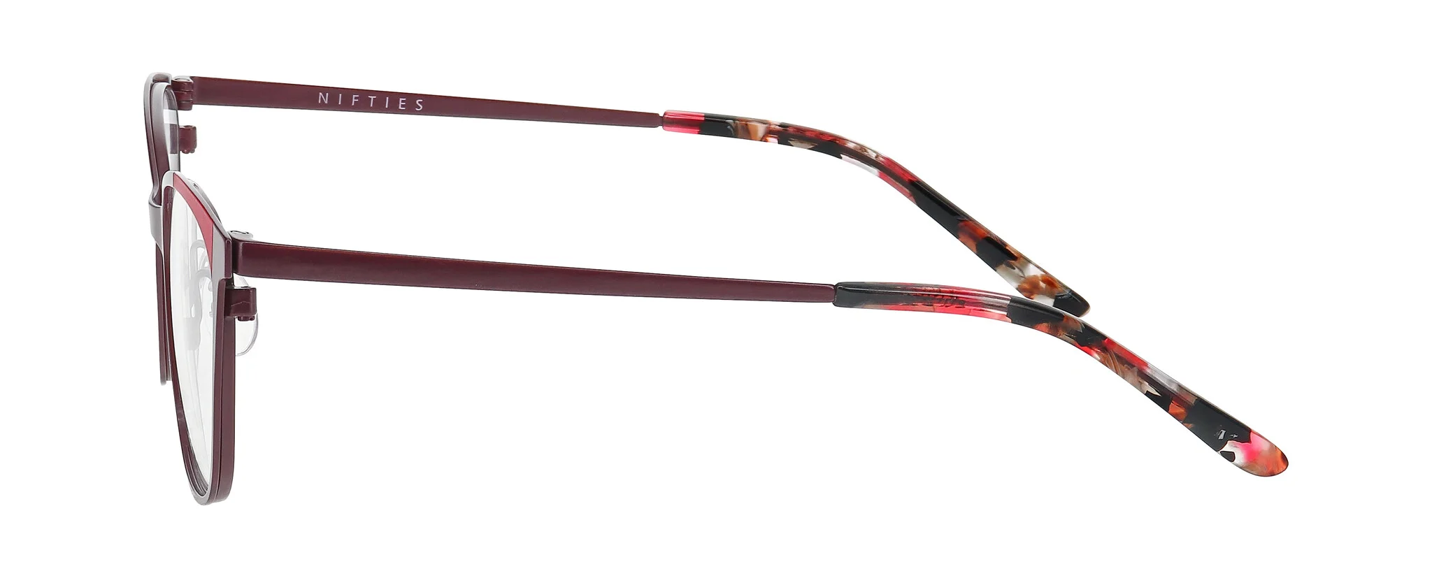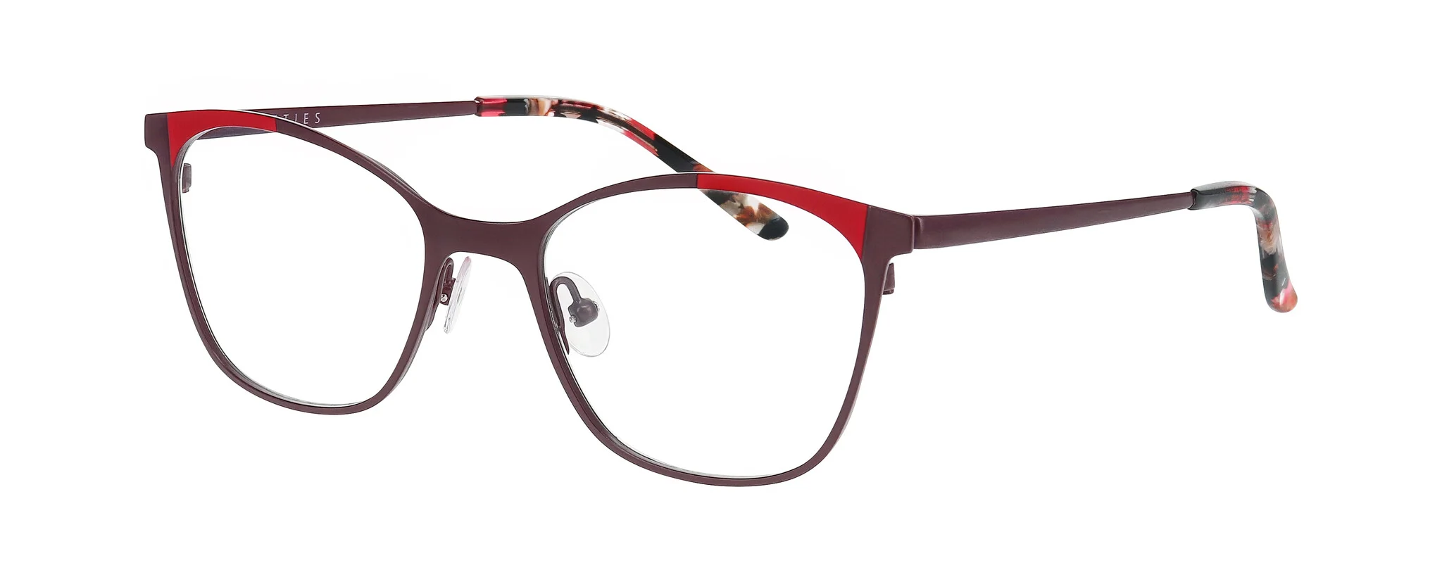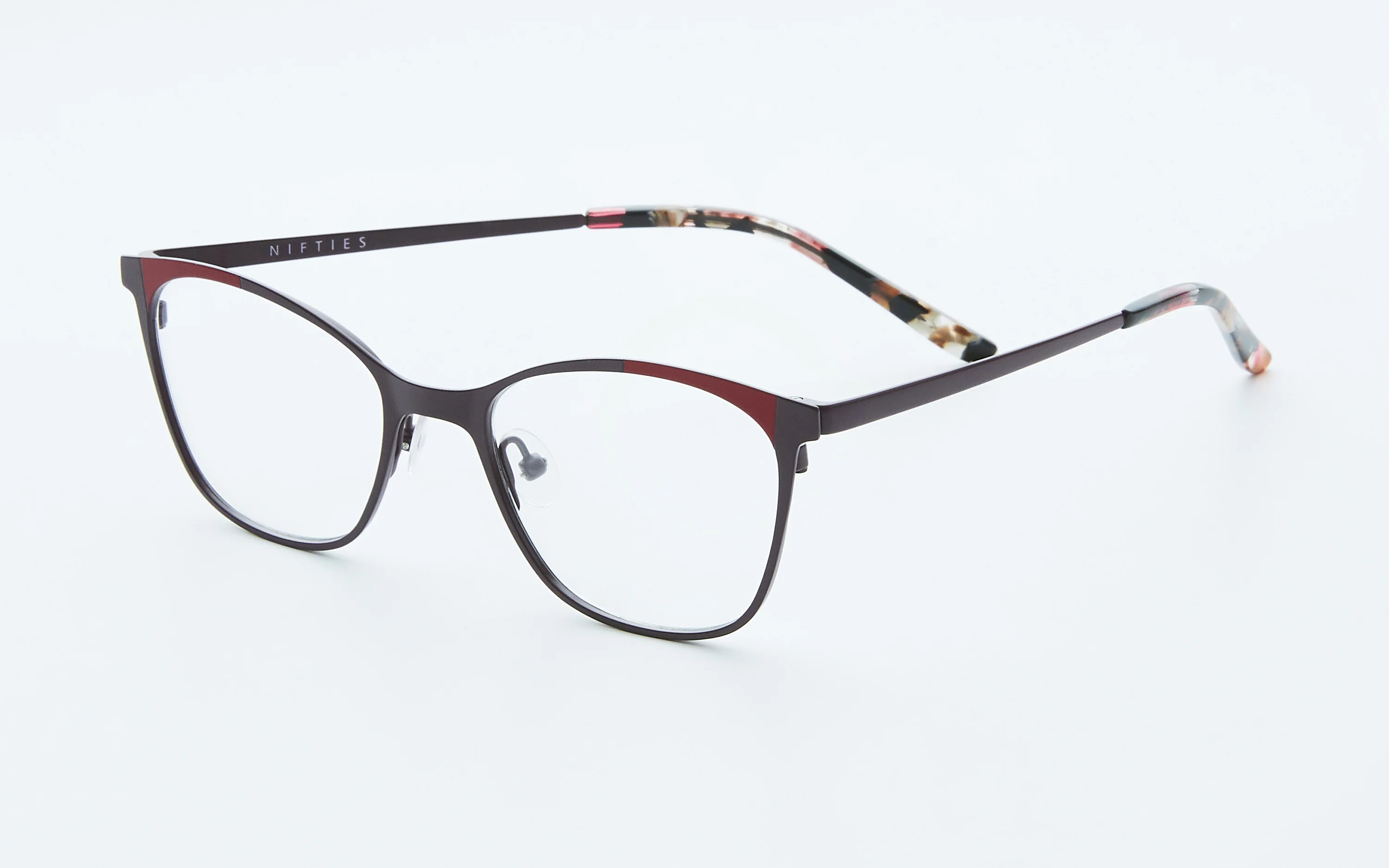 A finely angled oval ladies flat sheet metal style packs a punch with its laminated metal brow detailing and soft confetti tort accent temples. Released in popular matt finishes for a soft look, the satin highlights and adjustable nose pads make for the finest of fits.