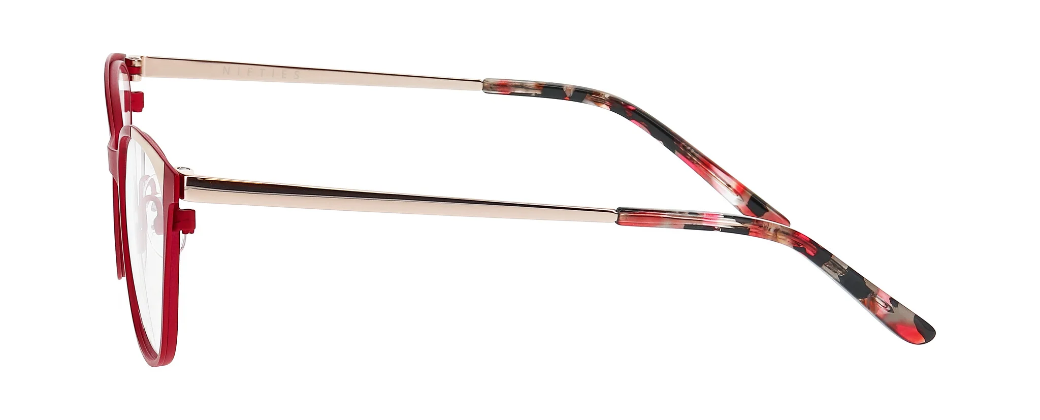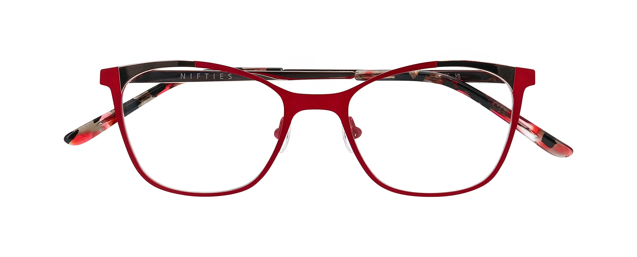 A finely angled oval ladies flat sheet metal style packs a punch with its laminated metal brow detailing and soft confetti tort accent temples. Released in popular matt finishes for a soft look, the satin highlights and adjustable nose pads make for the finest of fits.