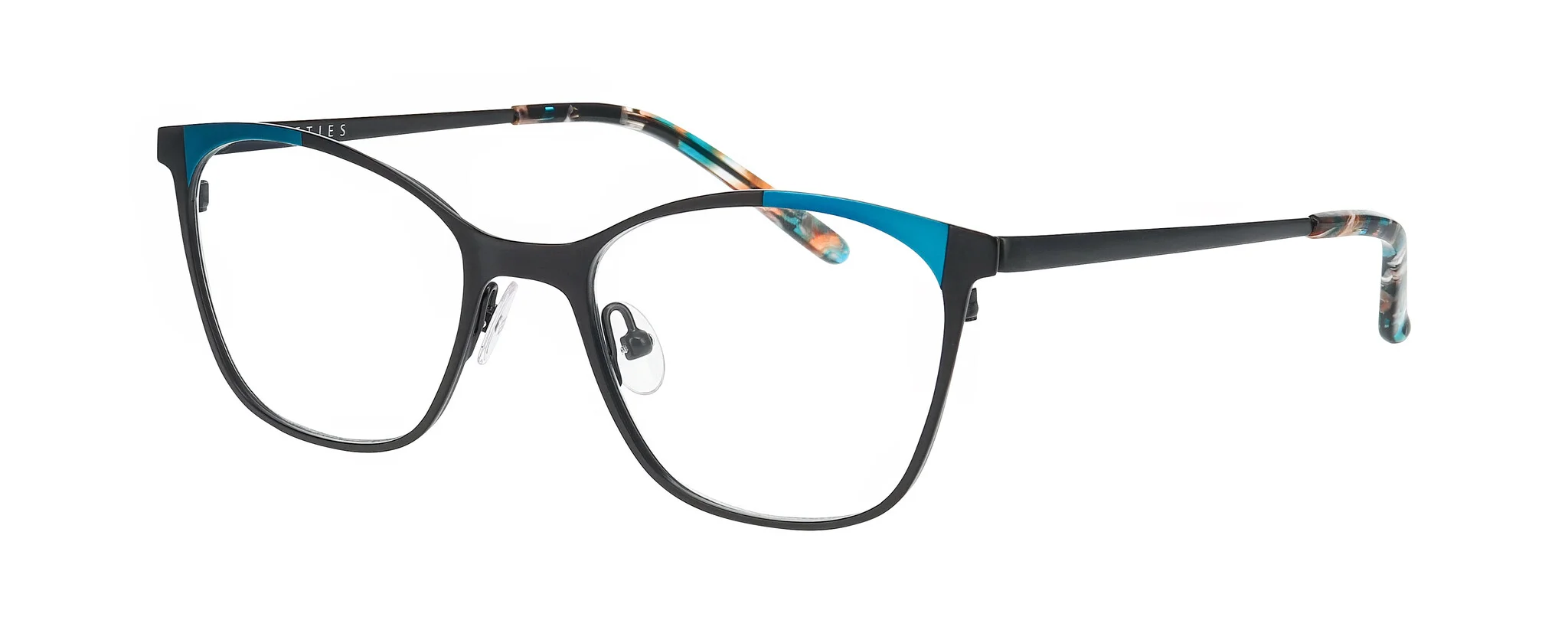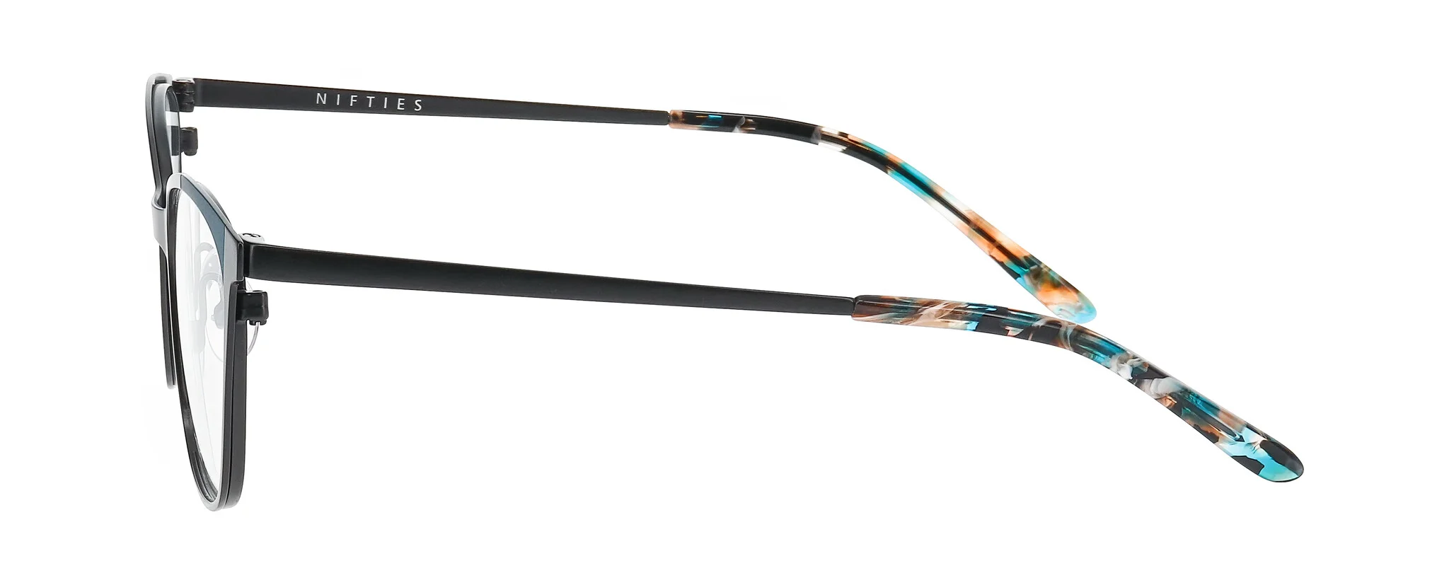 A finely angled oval ladies flat sheet metal style packs a punch with its laminated metal brow detailing and soft confetti tort accent temples. Released in popular matt finishes for a soft look, the satin highlights and adjustable nose pads make for the finest of fits.